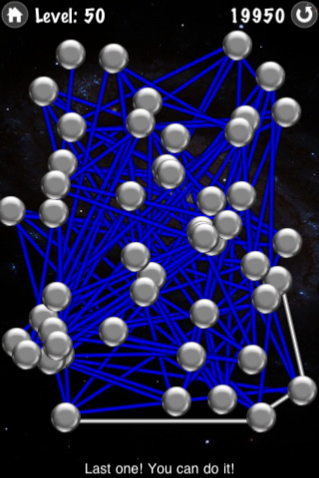 Tangled for iPhone is a puzzle game where the objective is to make it so no lines overlap. The lines are all connected by pegs. When you tap a peg, all the pegs connected to that peg via a line will light up. This gives you a better idea of what lines connect to what pegs. From there you can drag the peg around the screen in an attempt to untangle the lines.