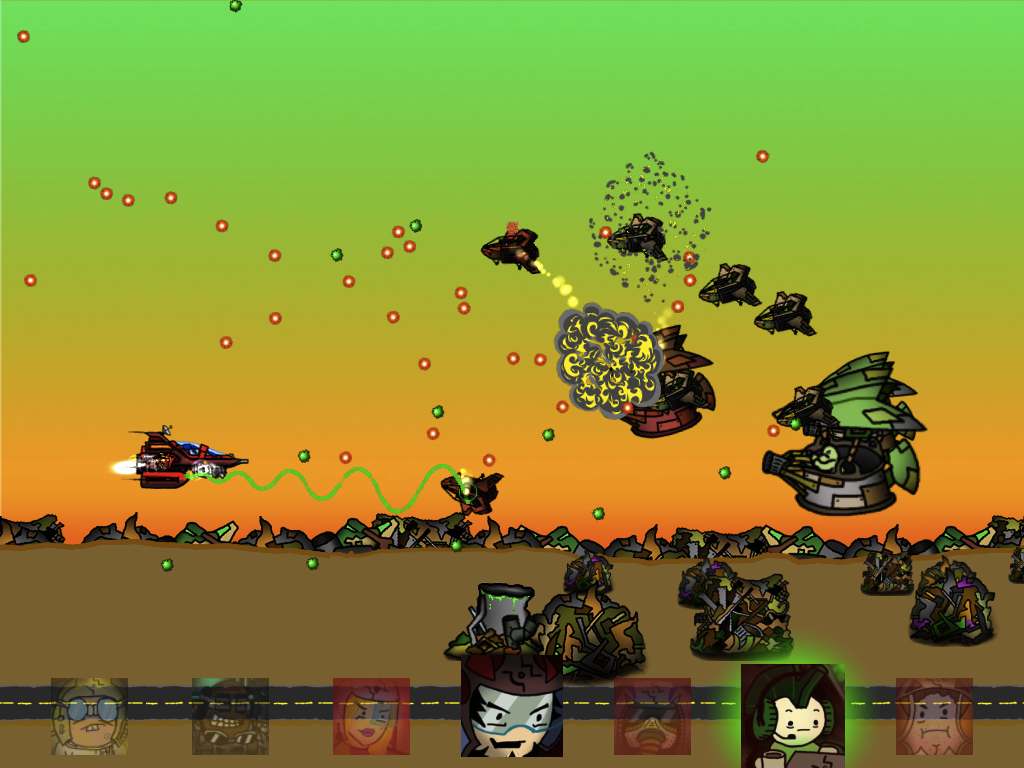The game is definitely unique. At first glance it looks like a typical space shooter but given a closer look, there are a few cool things that set it apart. First off, you get to play as six different characters. You can switch back and forth between these characters by tapping on their icon on the bottom of the screen. Each character has a different bio and can control different abilities (one of them being the pause button). For example, my favorite is Mac. Mac is the ship’s communications expert. While playing as Mac you are able to take control of enemy ships and have them attack for you. You can also throw the ships into other enemies.