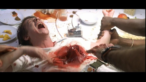 In addition to being a rape metaphor, the chestburster sequence also features a birth subtext, which is another fear that is hardwired into our collective unconscious. Granted, for the vast majority of people, birth is viewed as a miraculous, joyous event, but it is not without a sense of dread. With birth comes pain, as well as a sense of the unknown. Pregnancy is often difficult, and is even occasionally tied with death, either that of the baby or the mother. Alien takes these twin notions of birth and death, and links them in a totally horrifying manner. For the parasitic alien to live, the host must die. It is the ultimate violation of self, and another reason why the film is able to instill such an overpowering sense of fear in the viewer.