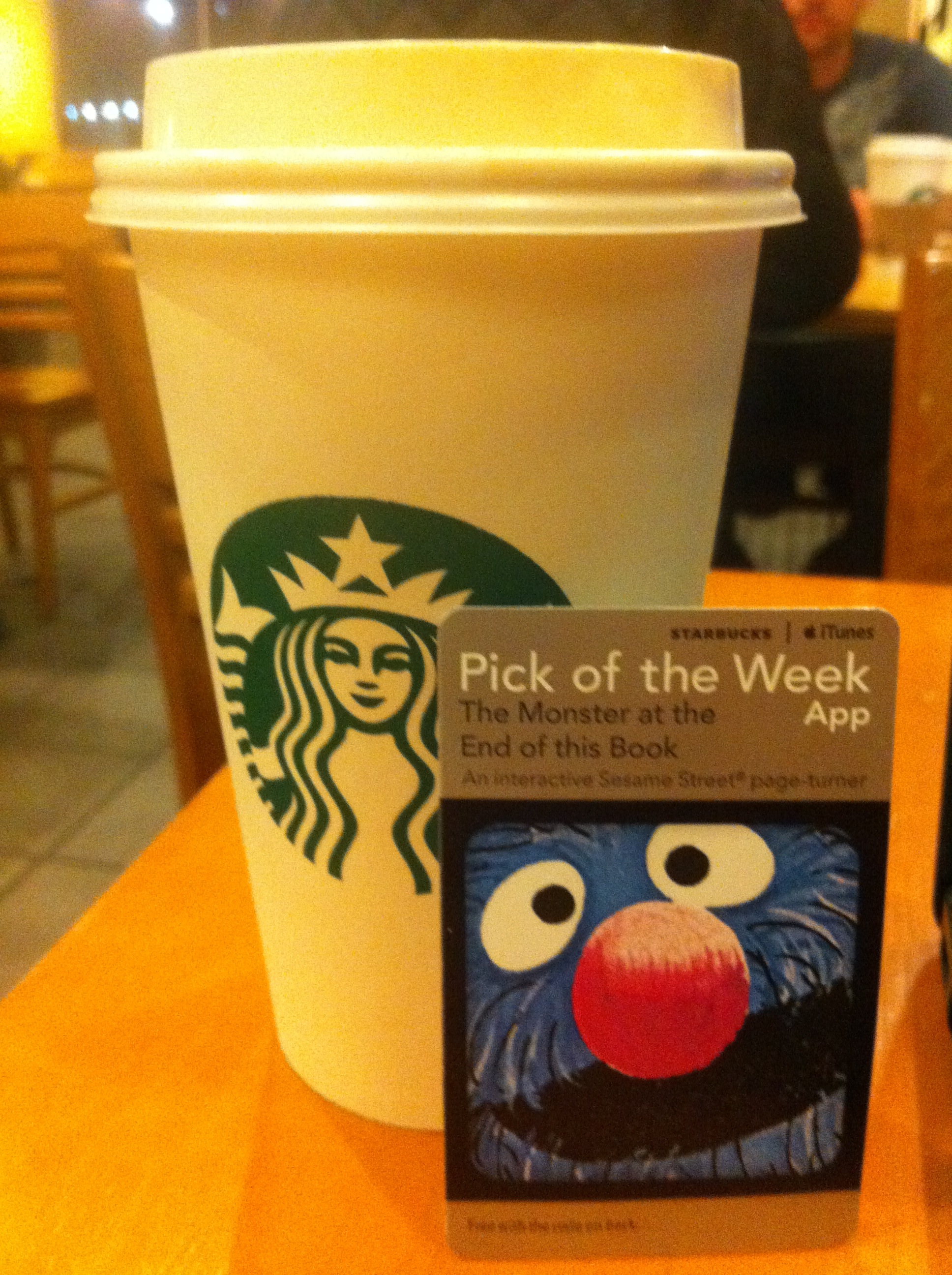 The Monster at the End of this Book for iPhone/iPad is available for $3.99 via the App Store. If you have/watch small children it’s definitely worth checking out. If you’re like me and just want it for the nostalgia involved $3.99 is a little steep. I would also recommend that anyone interested check his or her local Starbucks. I believe the Pick of the Week usually starts on Tuesday, but I know often times the cards stay out longer than a week so you may be able to score one.