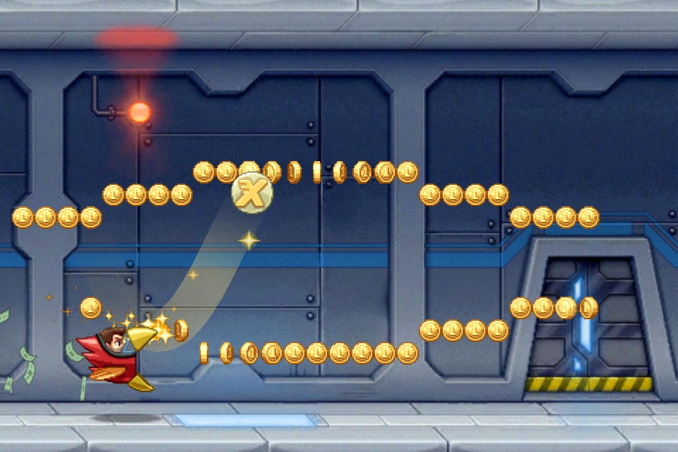 There are also coins to collect. After each run you can spend the coins on a variety of items. The items fit into two categories. The first are items that will help you get more coins. It could be something like an upgrade that makes Mr. Cuddles a coin magnet, or an item that allows you to get hit more than once. The second category of items is just items for esthetics – like a different colored helmet or jetpack. So when you really think about it, the coins don’t really matter. Still, there’s something about having them and spending them that just adds to the game. One thing that bothers me though is how long it takes to earn coins to buy some of these esthetic items. The reason it bothers me is because you can also buy coins via an in-app purchase. So clearly these items are priced so high to encourage customers to spend real money on more coins. These are the type of in-app purchases I can’t stand. But hey, no one’s making me buy them so I’ll shut up.