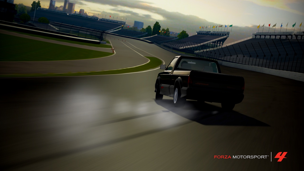 A GMC Syclone drifts the ‘ring at Indy