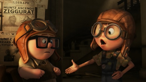 Up is chock full of great moments, but the one most often cited as the best (and with good reason) is the opening sequence, in which Carl and Ellie’s entire relationship is chronicled in the space of eight beautiful, touching, heartbreaking minutes. It all starts when they were kids, and Carl was running around pretending to be his hero, the aforementioned Charles Muntz. As Carl passes by a dilapidated old house, he hears the voice of a boisterous young girl who is also playing at being the famous adventurer. After a series of mishaps, the two meet, and discover that they both share a desire to visit Paradise Falls. Then, for the next eight minutes, we watch their relationship unfold. We follow along as Carl and Ellie grow up, get married, rebuild the old house where they first met, land careers at a local zoo, learn that they can’t have children, and see them grow old together. Then we shed a tear as Ellie dies, leaving Carl all alone.