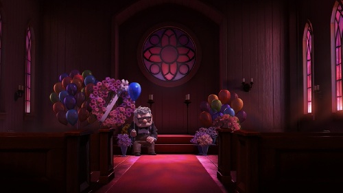 The sequence is great for a number of reasons, not the least of which is that it manages to draw the viewer in so completely in a short amount of time. In that eight minutes, we get to know Carl and Ellie almost as intimately as they know one another. Even though there is not a single line of dialogue during that time, we still come to understand their hopes and dreams, and thus we become much more invested in them as characters. We want nothing more than to see them achieve their dream of visiting Paradise Falls together, and we share their frustration when life constantly gets in the way, even though they face these challenges with grace and good humor. In the course of those eight minutes we become so swept up in the travails of these two animated characters that we actually experience Ellie’s heartbreak and devastation when she learns that she cannot have children. It is a testament to the skills of both the writers and the animators that we as viewers can be so moved by characters that are little more than pixels rendered on a hard drive, but we do because we come to know these characters so thoroughly in such a short amount of time. In fact, I defy anyone to not get at least a little misty eyed when Ellie is lying in the hospital bed, and that blue balloon comes floating in with a wooden stick attached to it in a poignant callback to an earlier moment in the that sequence. There are countless romantic comedies that only wish they could generate that sort of emotion in their viewers.