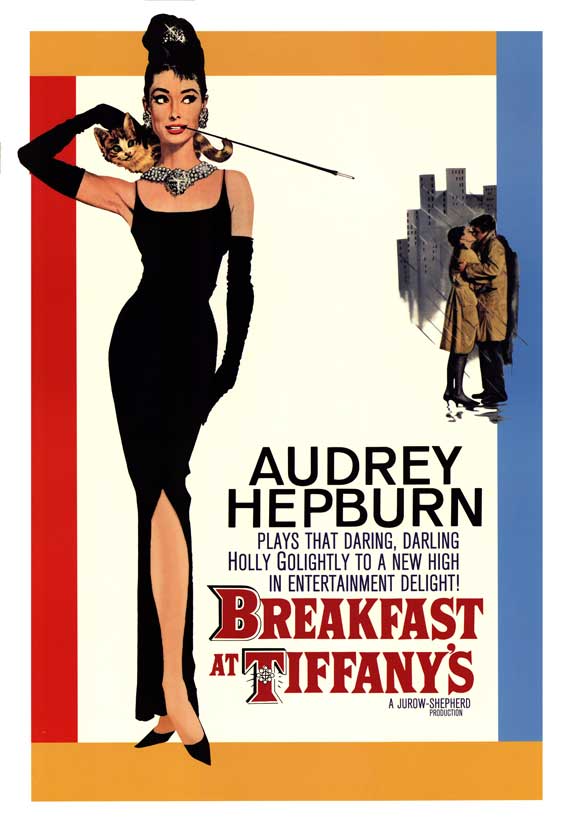 Directed by Blake Edwards, originally released in 1961. Society girl Holly Golightly (Audrey Hepburn) continually tries and fails to gold dig her way into rich men’s hearts, while slowly falling for her new neighbor, Paul (George Peppard).