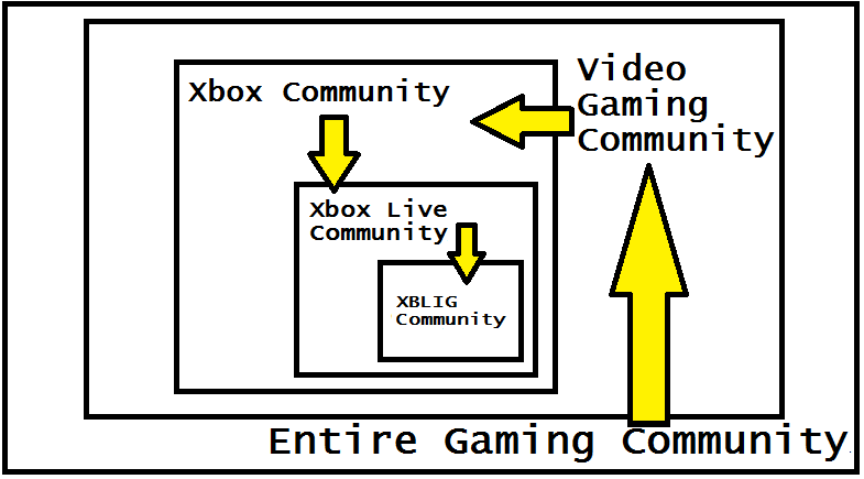 Now, the XBLIG community is a specific niche community that resides within the entirety of the Xbox Live community of gamers of the Xbox, and specifically Xbox 360, gaming community, who are themselves just a subset of the entire spectrum of gamers that exist in the world. Not all gamers play video games, or Xbox games, or XBLIG games, and there are even other subsets within the Xbox gaming community that look down or askance at the XBLIG community.