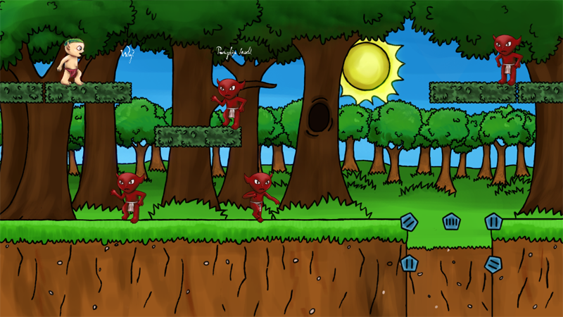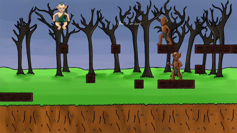 Combat also suffers, but in an odd way. The only real form of combat in the game is pressing “X” to “fire” words at opponents. All of your opponents can also shoot words at you, and almost without exception, the enemies respawn almost immediately. Each little stage is ultimately about making it to the end, and the enemies are obviously there to make it more difficult, but their instant re-spawns and the fact that they fire instantly any time you come even remotely into their line of sight just makes it frustrating. On many stages you must jump a series of fall away blocks while a couple of enemies fire at you without the least bit of hesitation. Because you can’t fire while jumping you are often forced to try and fire on an enemy immediately upon landing, but they are so quick to shoot you that this rarely works (or, in many cases the block falls out from under you). In the end, you can make it through each stage (believe me, you can) but it feels like you just got lucky rather than skill or otherwise on your part. Many of these stages have enemies spawning right at the end point too, and more than once I just got to the end only to have an enemy spawn and kill me immediately before I could reach the right side of my screen. There were many moments where I had to simply lower my head for a second, take a breath, and then try again.
