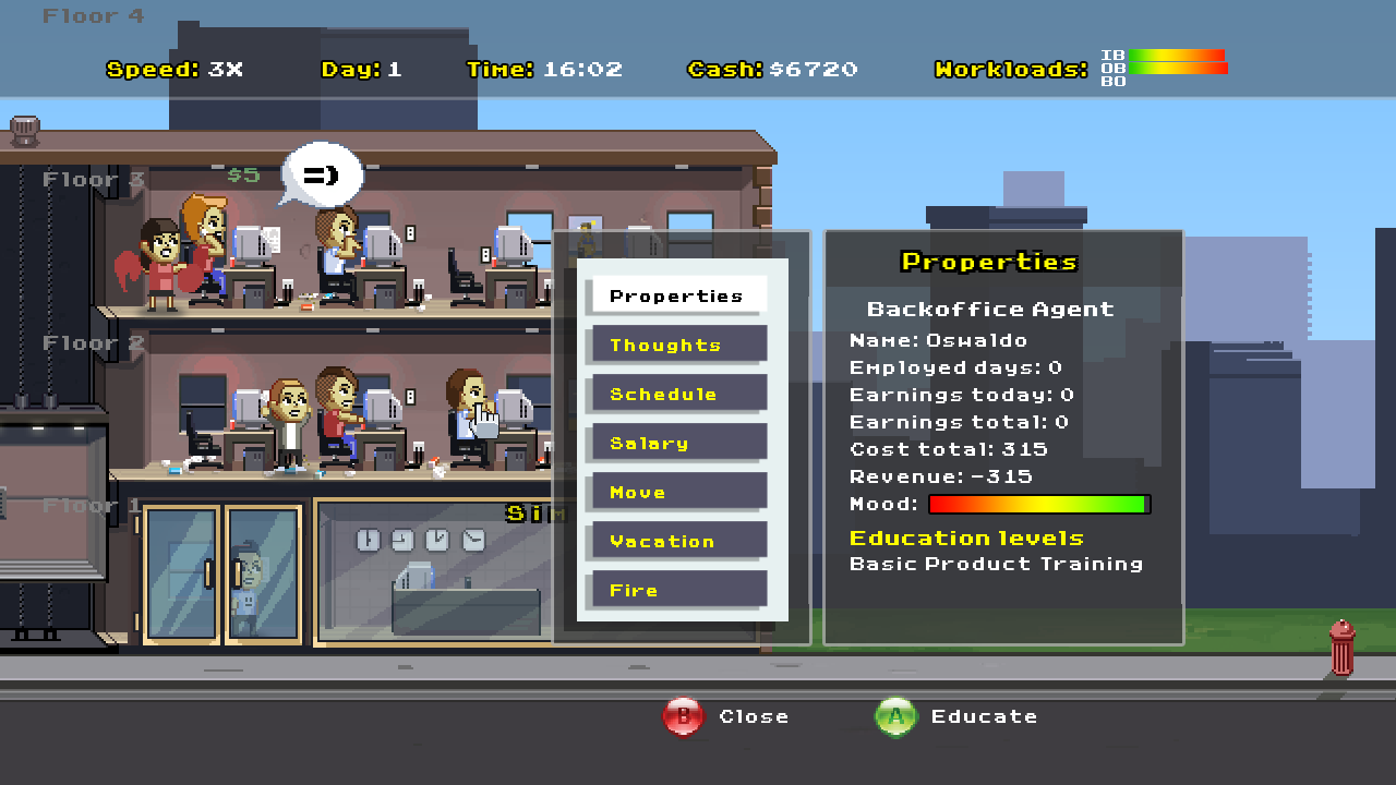 Smooth is insanely addictive if you loved SimCity. It allows you to control many of the aspects of the call center and the character sprite animations are hilarious to watch, as are some of the employ thoughts. The inter-workings of the simulator work great and the game runs perfectly. For those unfamiliar of the game, Smooth Operators does start off with a handy and informative tutorial.