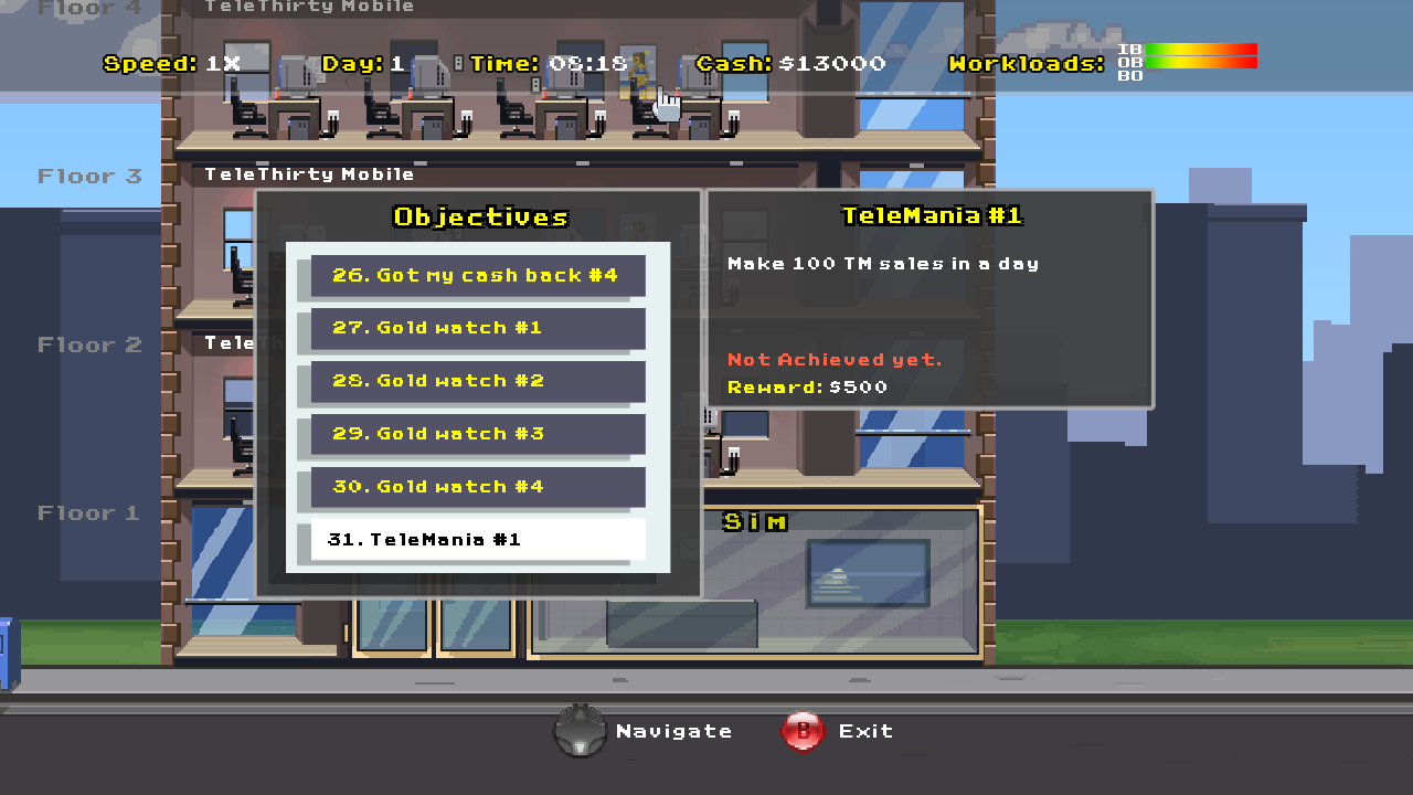 Smooth Operators lets you control a budding call center from a one small office building with the hope of creating a 40-story monolith. The game utilizes micromanagement for many of the inner workings, and how you run your call center depends on how well you can manage the details. As the game progresses, this action becomes much easier, especially around 50- plus days.