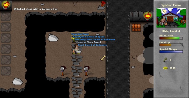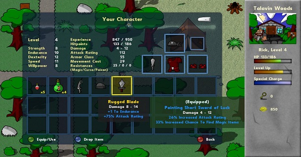 As a longtime lover of the role-playing genre, I was pleasantly surprised by the amount of thoughtfulness that went into some of the basic design elements. Inventory management is wonderful and is in many ways equal to the standards put forth in more well known franchises like Diablo or Guild Wars. Items picked up are immediately comparable to items equipped (yay!) and sorting through your loot is incredibly easy. I wish the developers would have spent some time to make the items you’ve equipped appear on Rick to add a feeling of customization but you can’t have it all.