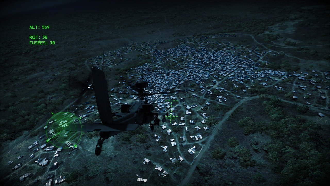 For the most part Apache Air Assault actually isn’t that difficult though, but certain moments cause immense frustration that undo the good will it created previously. About mid way through the game’s series of terrorist ass-kicking missions I found myself really enjoying the sort of natural flow I had developed with the Apache I was flying. I was buzzing over the terrain, moving with haste, making impressive banks and when the time came raining down hell of some people I imagine were screaming “Derka derka, Muhammad Jihad!” back at me. Immediately after I had to gain some altitude and engage in some air-to-air combat with some helicopters.