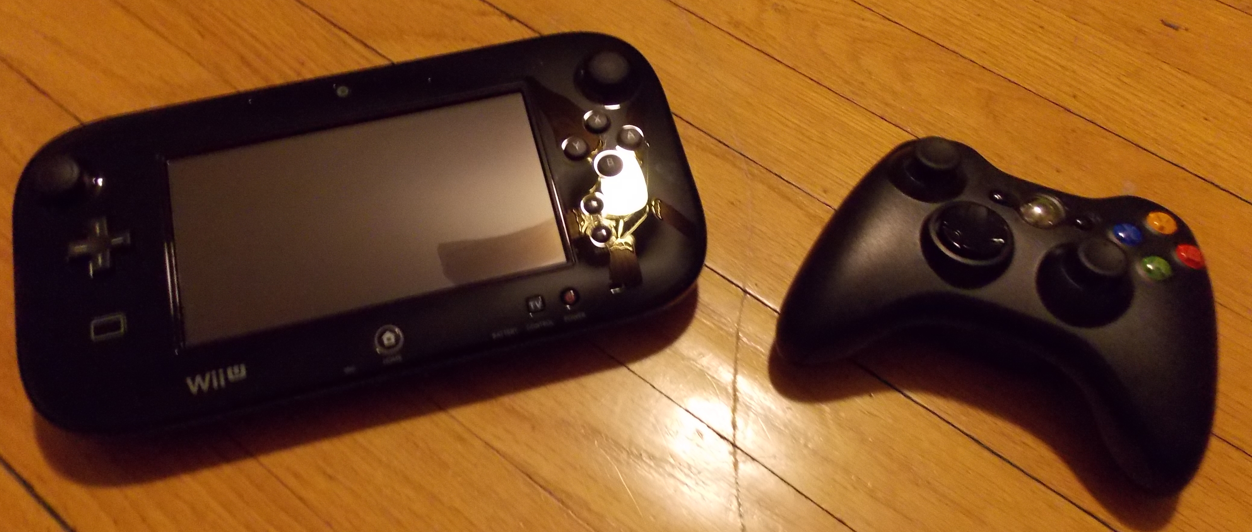 Even from the box I could get a sense about what I was getting into. The box said there are separate AC adapters, for the console and for the GamePad (the tablet device interface), meaning that the game controller does not have batteries like the Wiimotes. When I finally held the GamePad, I was glad there were no batteries, as the slim battery pack in the controller helps to maintain a lower weight — indeed, the controller weighed less than an Xbox 360 controller in my hands. The weight was comparable to a Kindle Fire HD, as was the size: even the screens were basically the same.