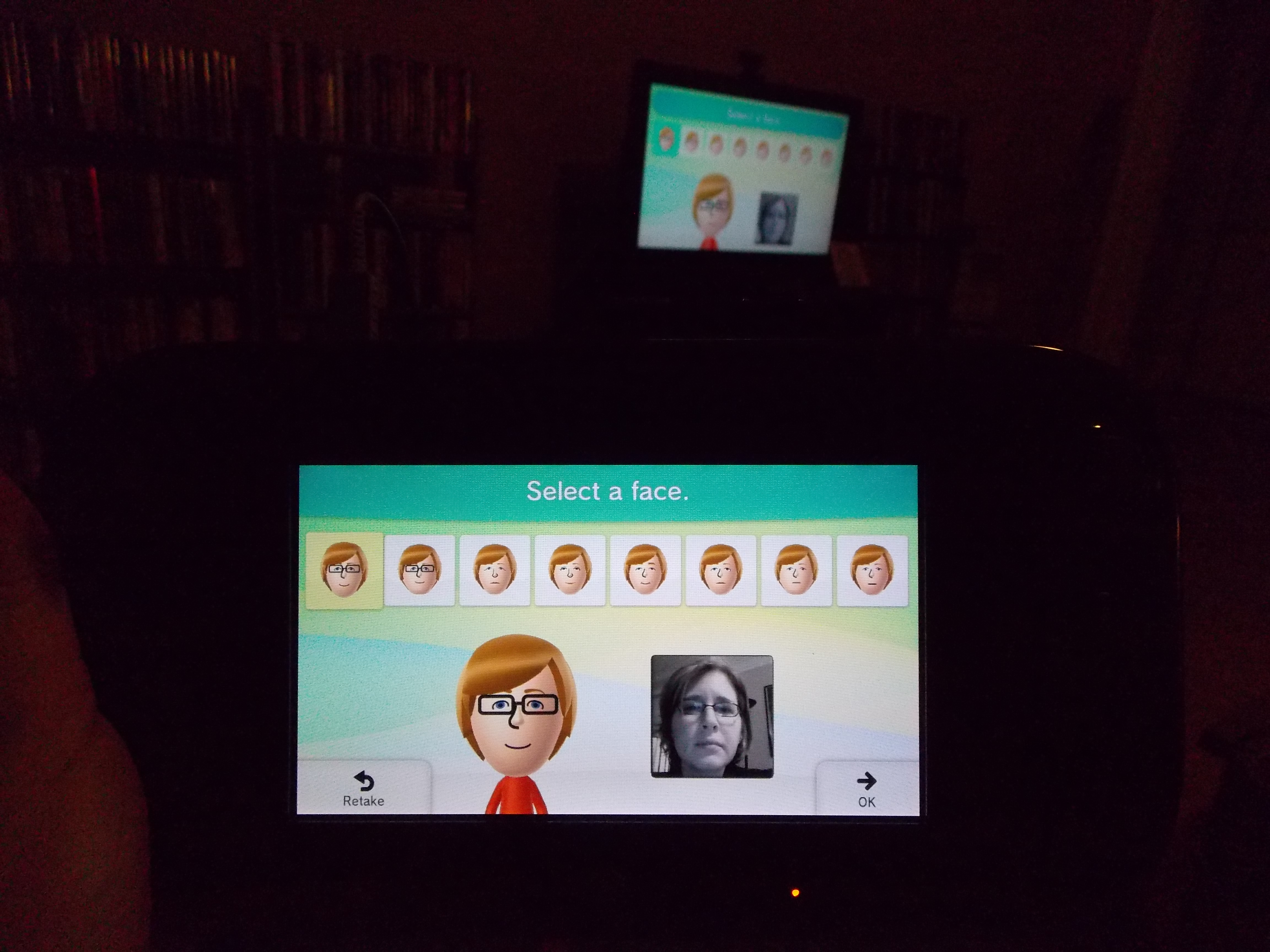 After the system was ready to actually be a video game console, setting up a new user account meant creating one of my favorite things with the Wii, your Mii. The Wii U provides four options for this avatar creation: from scratch, which is comparable to Mii creation with the Wii; from photo, where the GamePad will snap a picture of your face and merge it with the Mii; from connecting with your Nintendo 3DS, to import your avatar from that device; or by scanning a QR code, which allows you to download pre-designed avatars. I opted to have my GamePad use my face, which was quite a comical process. After merging my face onto the Mii’s face, I could further modify how it looked with the standard Mii customization controls.