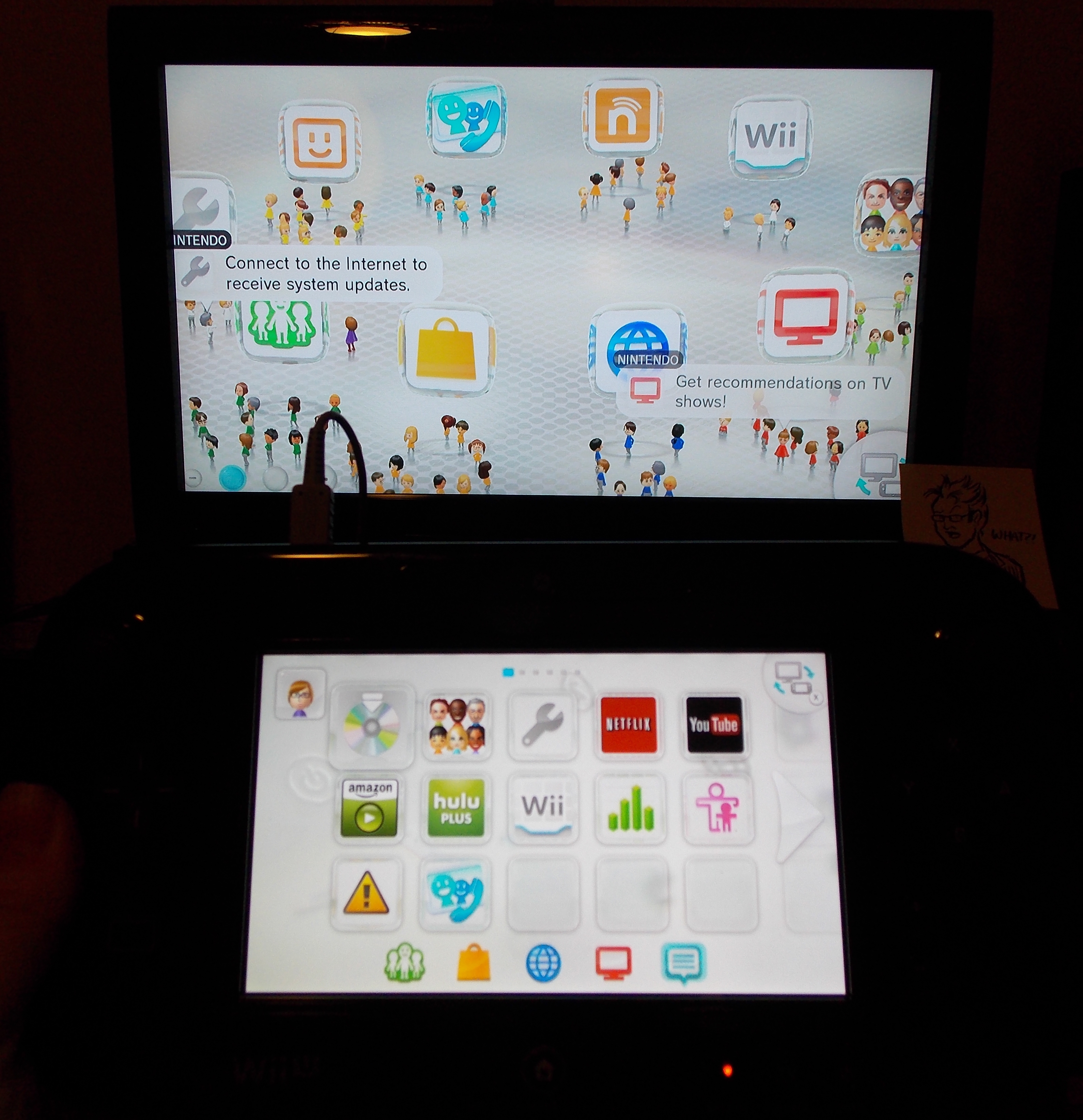 Anyway, from the beginning of the set-up, I could see how they were going to handle the trade-off of having to attend to two screens instead of one. At times, each screen would offer different information about what was happening, with the GamePad screen being the focus for times of actual interaction. The TV would give the instructions, and the GamePad would accept the answers. Heck, they are so integrated that the GamePad can become a TV remote, making the Wii U far less focused on physical movement and returning to the idea of video games cultivating couch potatoes. And the GamePad is designed for comfortable holding, not for fast motions like the Wiimote: it has built in grips and stand, allowing it to rest in the hands far easier than any tablet on the market. It also has rather good stereo sound, and a head phone jack to allow you to enjoy it in peace.